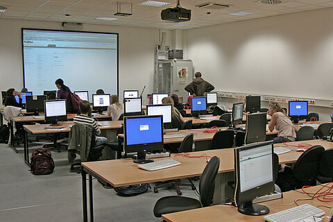 Die DV-Labore LI 304, LI 305 und LI 307 im Lipsius-Bau dienen ausschließlich als Lehrräume.