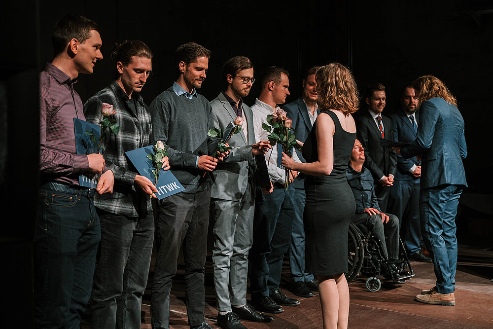Bei der Graduierungsfeier am 19. November 2024 wurden mehr Absolventinnen und Absolventen auf die Bühne des Kunstkraftwerks gebeten als je zuvor.