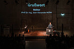 Mehr als 110 von über 300 Graduierten des Studienjahres 2023/2024 nutzen die Chance, in feierlicher Atmosphäre noch einmal zurück und zugleich vorwärts zu schauen, vor allem aber, sich noch einma richtig für ihre Leistungen feiern zu lassen. Neben dem Dekan, Professor Kulisch, entließen Professor Hartmann, Alumniverterter, Professor Engisch, Voritzender der Fördervereins, sowie Marie Kuss vom Kunstkraftwerk die ehemligen Studierenden in die nächste Lebensphase - und luden sie zugleich dazu ein, weiterhin in Verbindung zu bleiben.