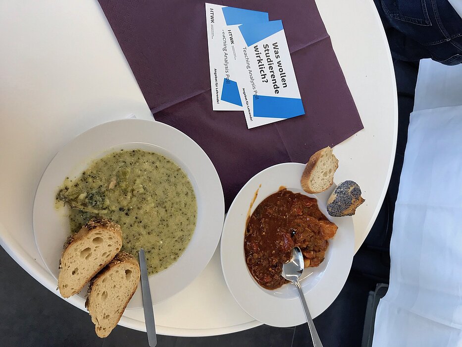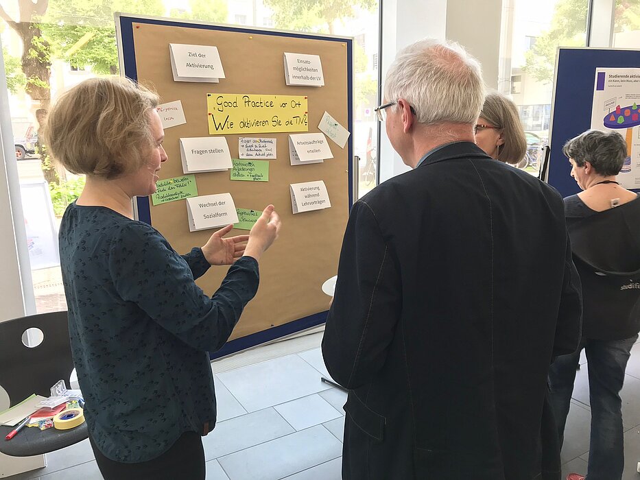 „Eine gelungene Kombination aus Essen und Informationen“, heißt es auf einem Feedback-Bogen. Professorenschaft, Tutoren, Seminarleitungen oder vereinzelt Interessierte aus der Studierendenschaft unterhielten sich gleichermaßen über die vielen unterschiedlichen Methoden, die dazu beitragen sollen, Studierende zu aktivieren.