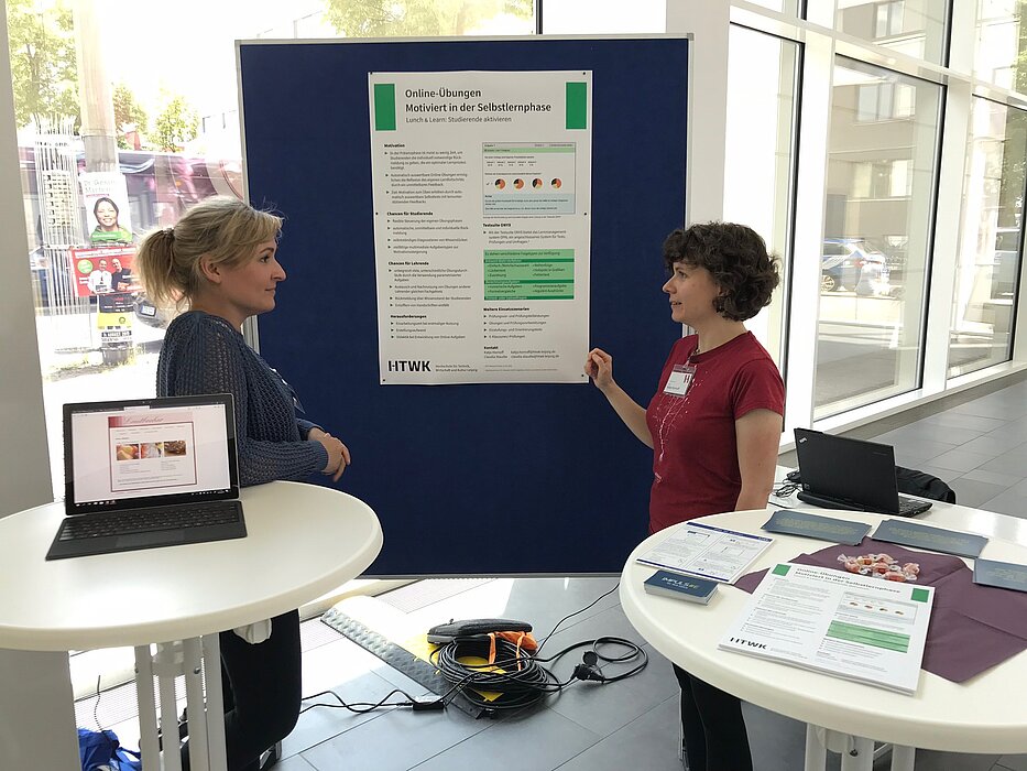 Darum geht es: Wie kann man Umfragen und Quizzes umsetzen? Klicker oder Karten? Wie bringe ich Kleingruppen zum gemeinsamen Lernerfolg? Die Stände bieten Hilfe zur Selbsthilfe - ein Markt der Möglichkeiten für Lehrende an der HTWK Leipzig: