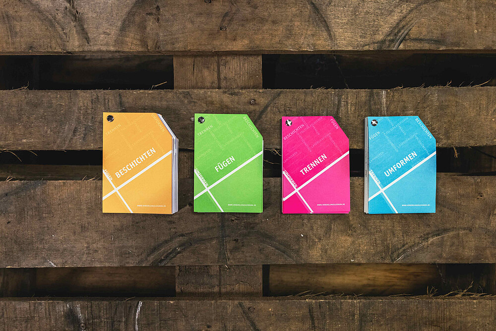 Da viele Veredelungsarten aber über ihre Haptik wirken, ist im Zuge der Projektarbeit zudem eine Musterbox entstanden. Die Box beinhaltet zu insgesamt 33 Veredelungsverfahren technische Informationen und Musterkarten.