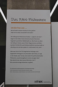 Ob Filme oder Bücher, ob Musizierende oder Sporttreibende, sie alle haben eine Anhängerschaft, welche sie unterstützen. Sie alle werden von Fans bejubelt und unterstützt. Doch was ist ein Fan? Ist es der Jubelnde beim Fußball, die verkleideten Gestalten auf Veranstaltungen wie der Leipziger Buchmesse oder doch mehr? Und was hat Religion mit dem Thema zu tun? In der Ausstellung „Das FAN Phänomen “ soll es genau darum gehen. Was macht den Fan aus und warum uns das alle etwas angeht!