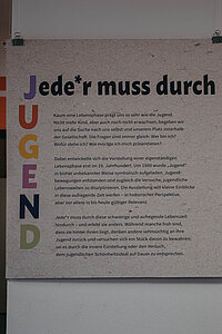 Freitag laufen sie durch die Straßen mit Plakaten in der Hand. Sie schwänzen die Schule, um für ihre Sache auf die Straße zu gehen. Jugendliche waren schon immer Anstoß für Ärger und doch auch ein Grund für ältere Generationen sich zurückzuerinnern. Doch was macht Jugend aus? Ist es nur der Aktivismus oder steckt in diesem Thema noch viel mehr? Die Ausstellung „Jugend - Jede:r muss durch“ beschäftigt sich genau damit. Sie bildet von Jugendkultur bis zu dem Gedanken des Nicht-älter-werden-Wollens alle Facetten ab, die man zwischen Kindheit und Erwachsensein durchleben muss.