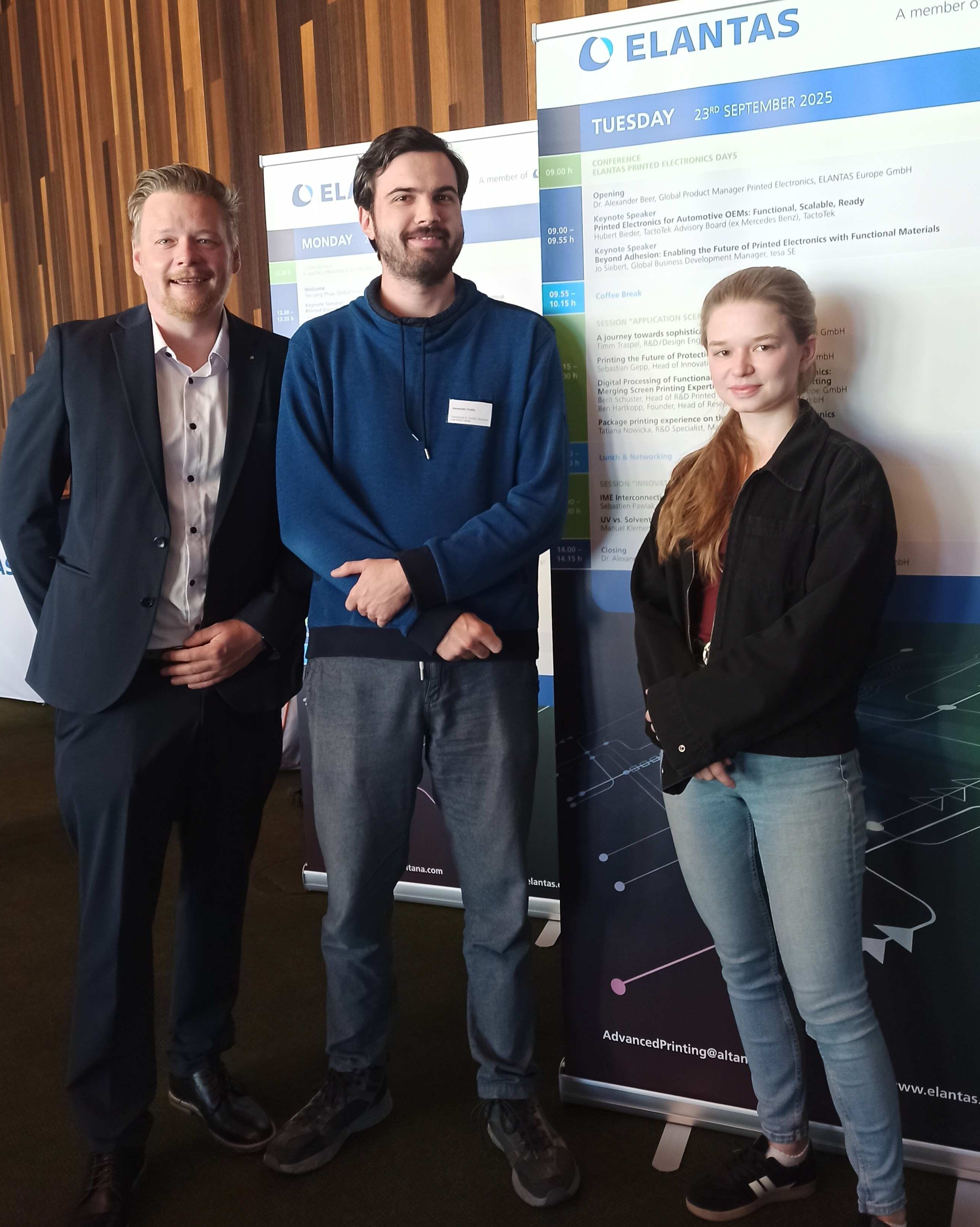 v.l.n.r. Ben Ehlert von ELANTAS gemeinsam mit den Studierenden Alexander Prettin und Maja Oehmichen vom 01. Oktober 2025 Studierende der HTWK Leipzig bei den ELANTAS Printed Electronic Days in Hamburg Gedruckte Elektronik gilt als Schlüsseltechnologie der Zukunft – von smarten Textilien bis hin zu innovativen Sensoren. Studierende der Fakultät… mehr Informationen