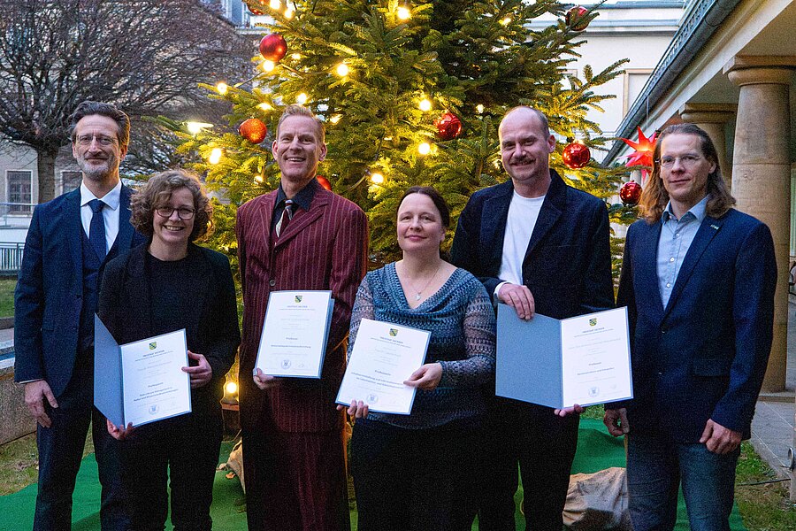 Am 3. Dezember hat HTWK-Rektor Prof. Dr.-Ing. Jean-Alexander Müller zwei neuen Professorinnen und zwei neuen Professoren der Hochschule feierlich die Berufungsurkunden verliehen: