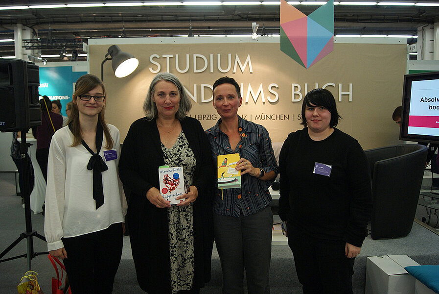 Fünf aufregende Tage auf der Frankfurter Buchmesse 2016 liegen hinter den Kommilitoninnen des Studiengangs Buchhandel/Verlagswirtschaft. Auf der Messe präsentierten sie ihre Hochschule am Gemeinschaftsstand „Studium rund ums Buch“. Das Highlight des Messeauftritts der HTWK Leipzig waren die von den Studentinnen selbst organisierte Lesung und das Interview mit Monika Peetz und Susanne Rehlein am Buchmesse-Freitag. Sie lasen aus ihren neuesten Romanen „Ausgerechnet wir“ (Kiepenheuer & Witsch) und „Lucy Schröders gesammelte Wahrheiten“ (Dumont), die unter dem Motto „Zwei Liebesautorinnen im Gespräch“ anschließend genauer unter die Lupe genommen wurden. Beide Autorinnen beantworteten mit Charme und Witz die Fragen der Studentinnen und des Publikums. Die Zuhörer und Zuhörerinnen zeigten sich begeistert und die Veranstaltung fand bei allen Anwesenden großen Zuspruch.