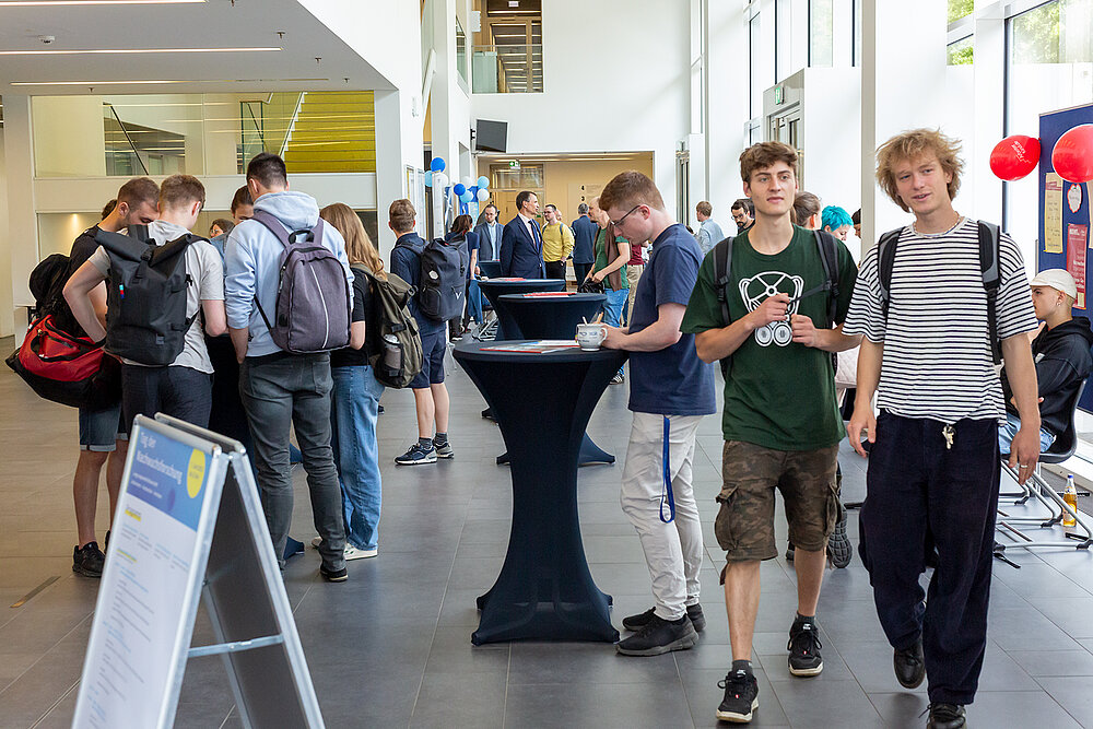 Zum zweiten Mal lud das Graduiertenzentrum Forschungsinteressierte, Nachwuchsforschende sowie Unterstützerinnen und Unterstützer zum „Tag der Nachwuchsforschung“ in den Nieper-Bau ein. Nach der Premiere dieses Tags der Vernetzung und des überfachlichen Austauschs anlässlich des sechsten Geburtstags des GradZ im vergangenen Jahr etablierte sich die Veranstaltung zu einem beliebten Angebot: Studierende, Promotionsinteressierte und wissenschaftlich Mitarbeitende informierten sich auch dieses Jahr wieder am GradZ-Stand, bei der Promovierendenvertretung ProV und im Science Speed Dating über Fragen rund ums Thema Promotion und über Karrieremöglichkeiten in der Forschung.