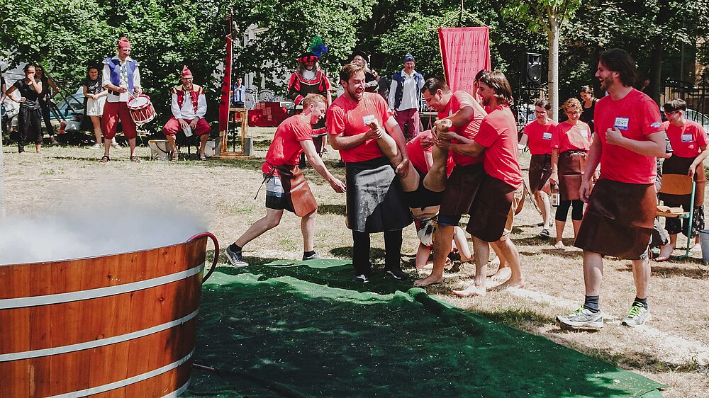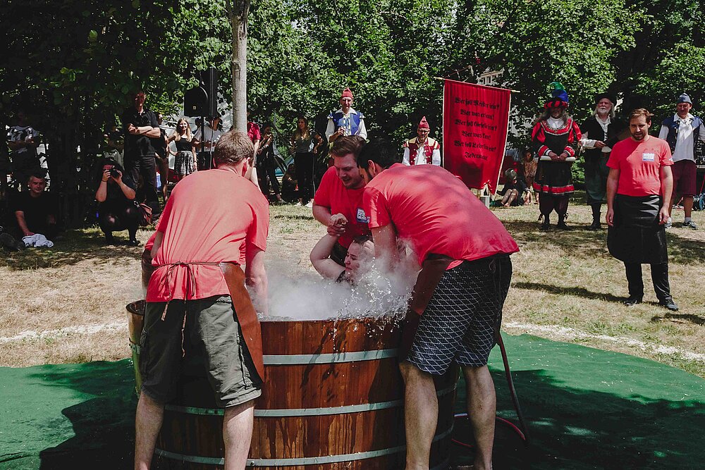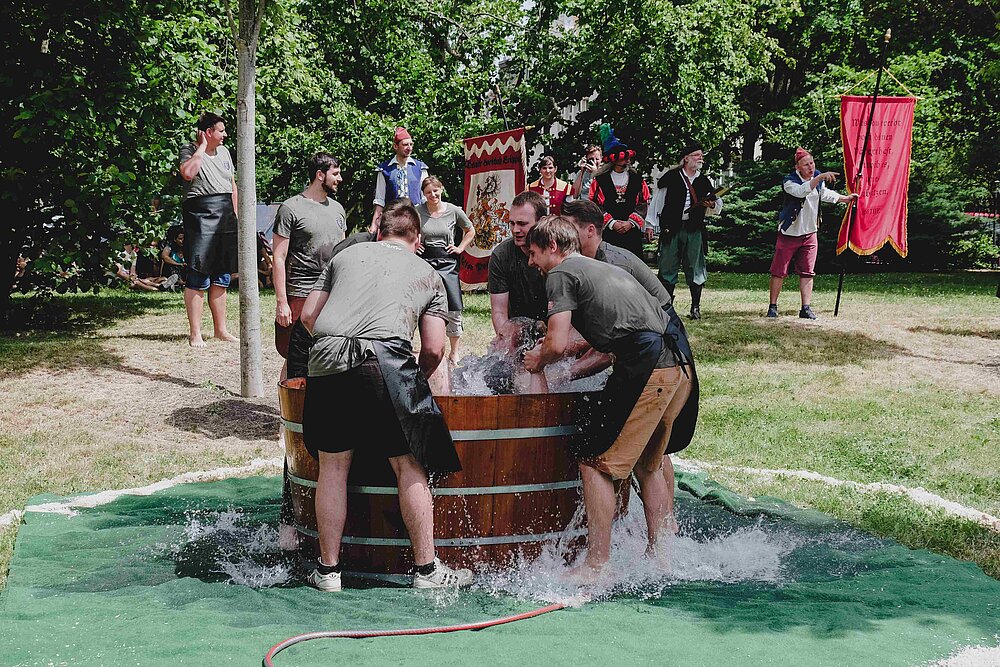 Die Fakultät Informatik und Medien feiert alljährlich ihr Gautschfest und setzt damit eine jahrhundertealte Tradition der Druckerzunft fort. Die Gautschlinge, freiwillige Studierende zum Beispiel aus den Studiengängen Buch-und Medienproduktion und Digitale Print-Technologien, machen Bekanntschaft mit dem feuchtfröhlichen Brauch, bei dem sie einer inneren wie äußeren Reinigungszeremonie unterzogen werden.