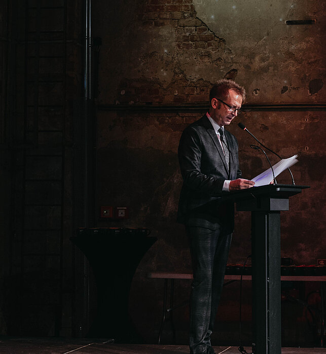 Mehr als 110 von über 300 Graduierten des Studienjahres 2023/2024 nutzen die Chance, in feierlicher Atmosphäre noch einmal zurück und zugleich vorwärts zu schauen, vor allem aber, sich noch einma richtig für ihre Leistungen feiern zu lassen. Neben dem Dekan, Professor Kulisch, entließen Professor Hartmann, Alumniverterter, Professor Engisch, Voritzender der Fördervereins, sowie Marie Kuss vom Kunstkraftwerk die ehemligen Studierenden in die nächste Lebensphase - und luden sie zugleich dazu ein, weiterhin in Verbindung zu bleiben.