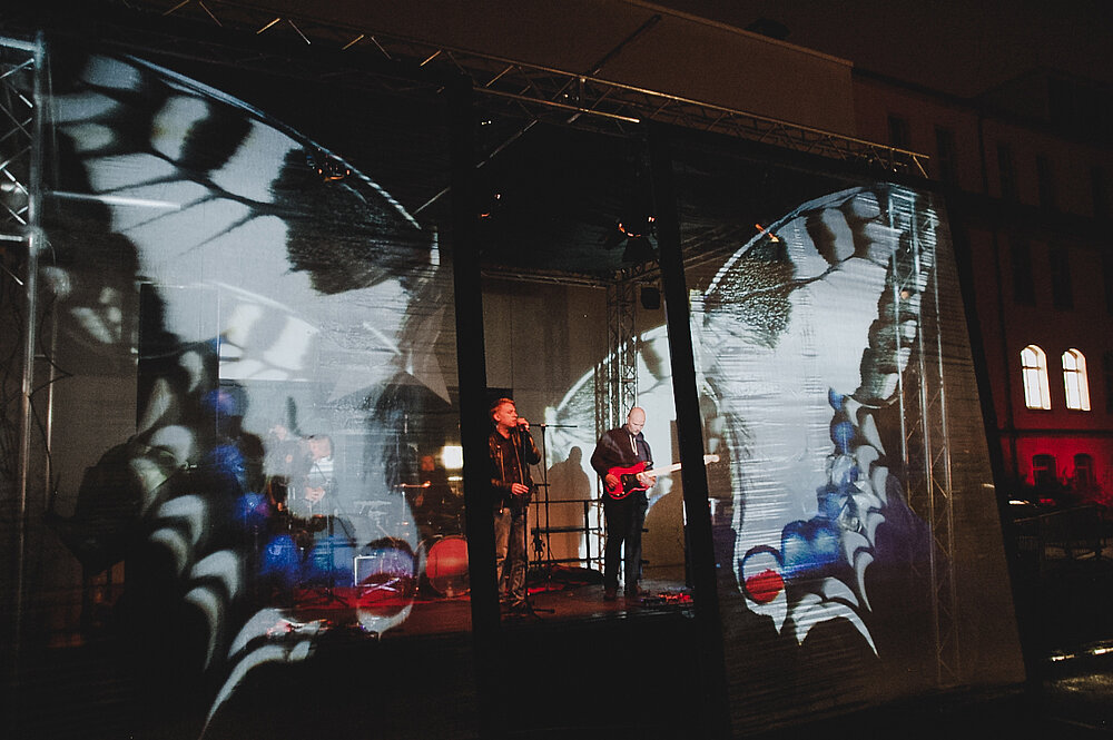 „Ein feuriger Abend“, fanden die Gäste am Freitag, 2. November 2011. Mit einer Bühnenshow, Fassadenprojektionen und Feuerwerk wurde beim Medienzentrum der HTWK gefeiert.