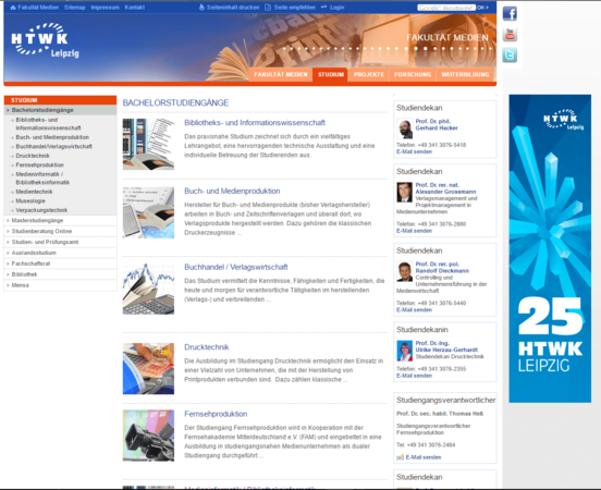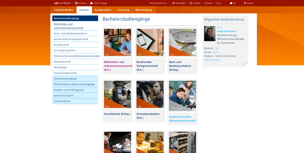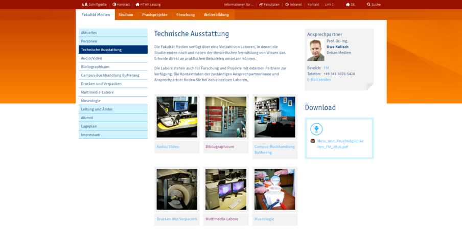 Die neu gestaltete Fakultät-Medien-Webseite ist eine Weiterführung des Corporate Designs vom Internetauftritt der HTWK Leipzig.