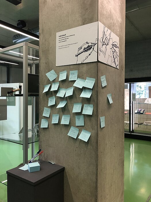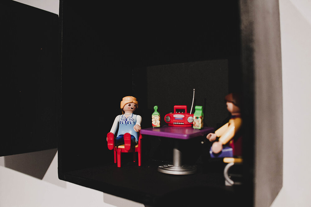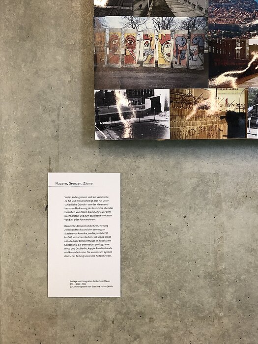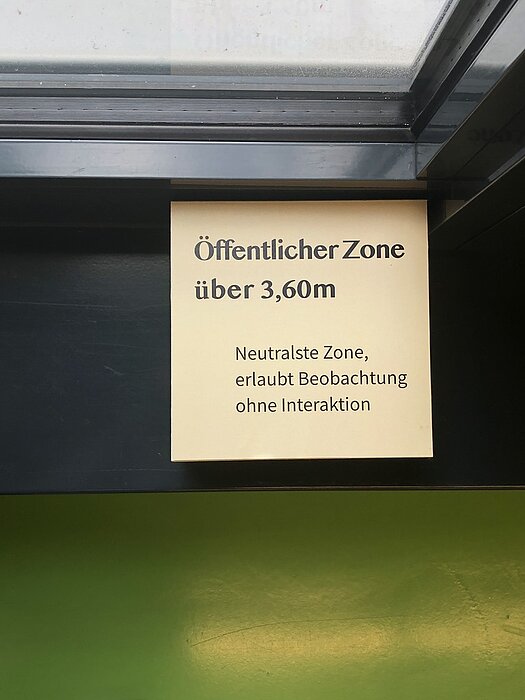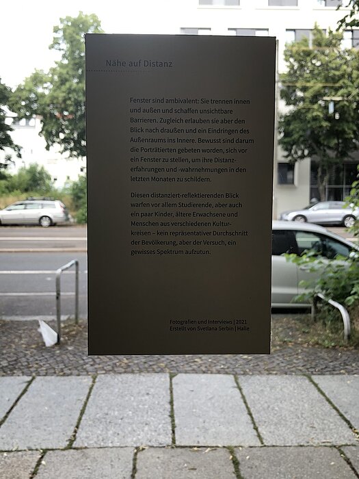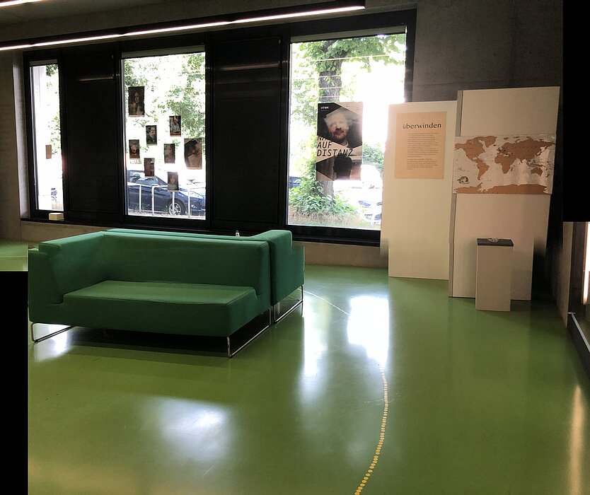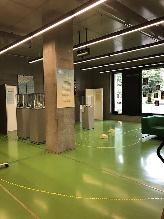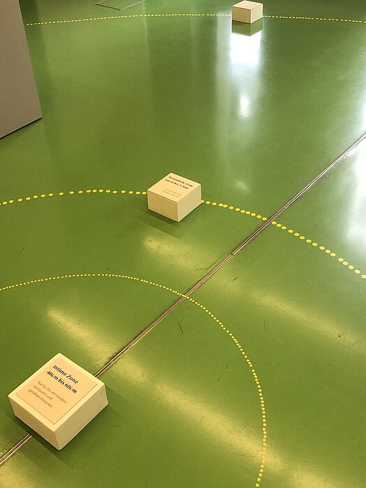 Die Museologie-Studierenden Mako Fukuda, Normann Kirst, Svetlana Serbin und Hanfeng Zhao haben ihre Ausstellung geschaffen, um den Besuchenden die Vielfältigkeit des Distanzthemas aufzuzeigen und auch die nicht negativ behafteten Seiten der Distanz zu zeigen. In drei Themengebieten können die Besuchenden etwas über die Wahrnehmung, Schaffung und Überwindung von Distanz erfahren.