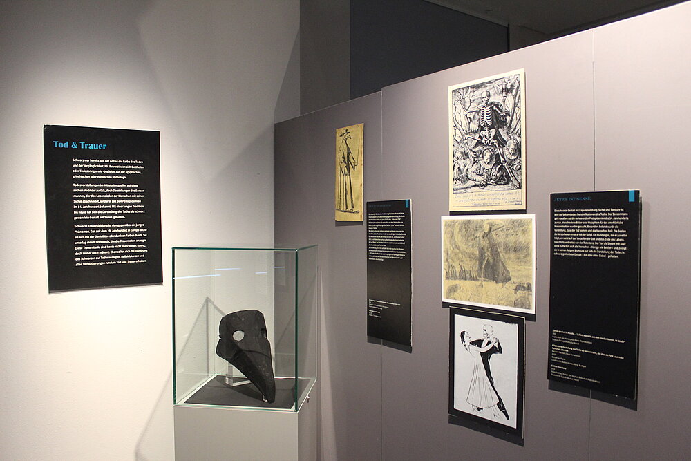 Jede Farbe ist mit Bedeutungen und Assoziationen verbunden – und am „Buntesten“ treibt es das Schwarz, dessen farbpsychologische Konnotationen vielfältig und ambivalent sind. Von unseren ersten Eindrücken wie Finster, Böse und dem Tod spinnt sich der Faden weiter. Schwarz wird als ein Symbol von Macht und Disziplin aufgegriffen, wandelte sich im Laufe der Geschichte und hat sich heutzutage in unserem Alltag etabliert. Vom Sensenmann bis zu Audrey Hepburn im kleinen Schwarzen. Über Graf Dracula der im Dunkel der Nacht sein Unwesen treibt bis zum schwarzen Ölkäfer wird die ganze Bandbreite der Farbe Schwarz in der Ausstellung präsentiert.