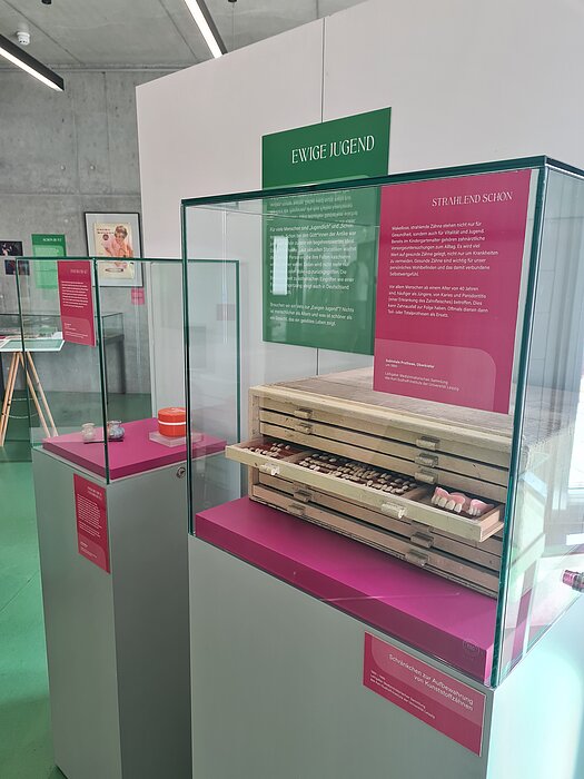 Die Ausstellung "Schrecklich schön" befasst sich mit Schönheitsvorstellungen der vergangenen Jahrhunderte und stellt sie den heutigen Idealen gegenüber. Besonders hervorgehoben wird die gegenwärtige übermäßige Auseinandersetzung mit Schönheit durch soziale Medien und das, was daraus hervorzugehen scheint. Thematisch werden die Bereiche Bekleidung, Gesicht und Körper ausgearbeitet, die um das Zentrum Medien angeordnet sind. Das Ende findet die Ausstellung im Bereich Individualität mit Bezug auf innere Schönheit, Akzeptanz, Inklusion und der aktuellen medialen Präsenz von Individualität gegenüber Uniformität.