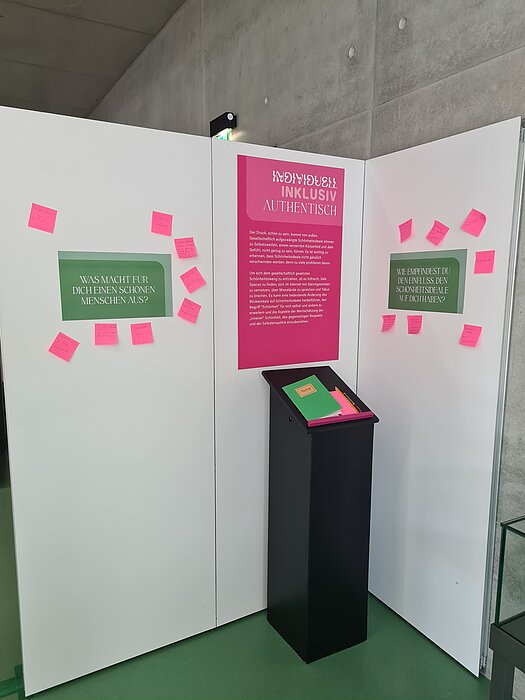 Ziel der Ausstellung ist, dass die Besuchenden sich und ihre Wahrnehmung von Schönheit reflektieren, Gefahren erkennen und popkulturelle Beispiele aufgezeigt bekommen, die Schönheit dekonstruieren, sich anders damit auseinandersetzen und „ausbrechen“.