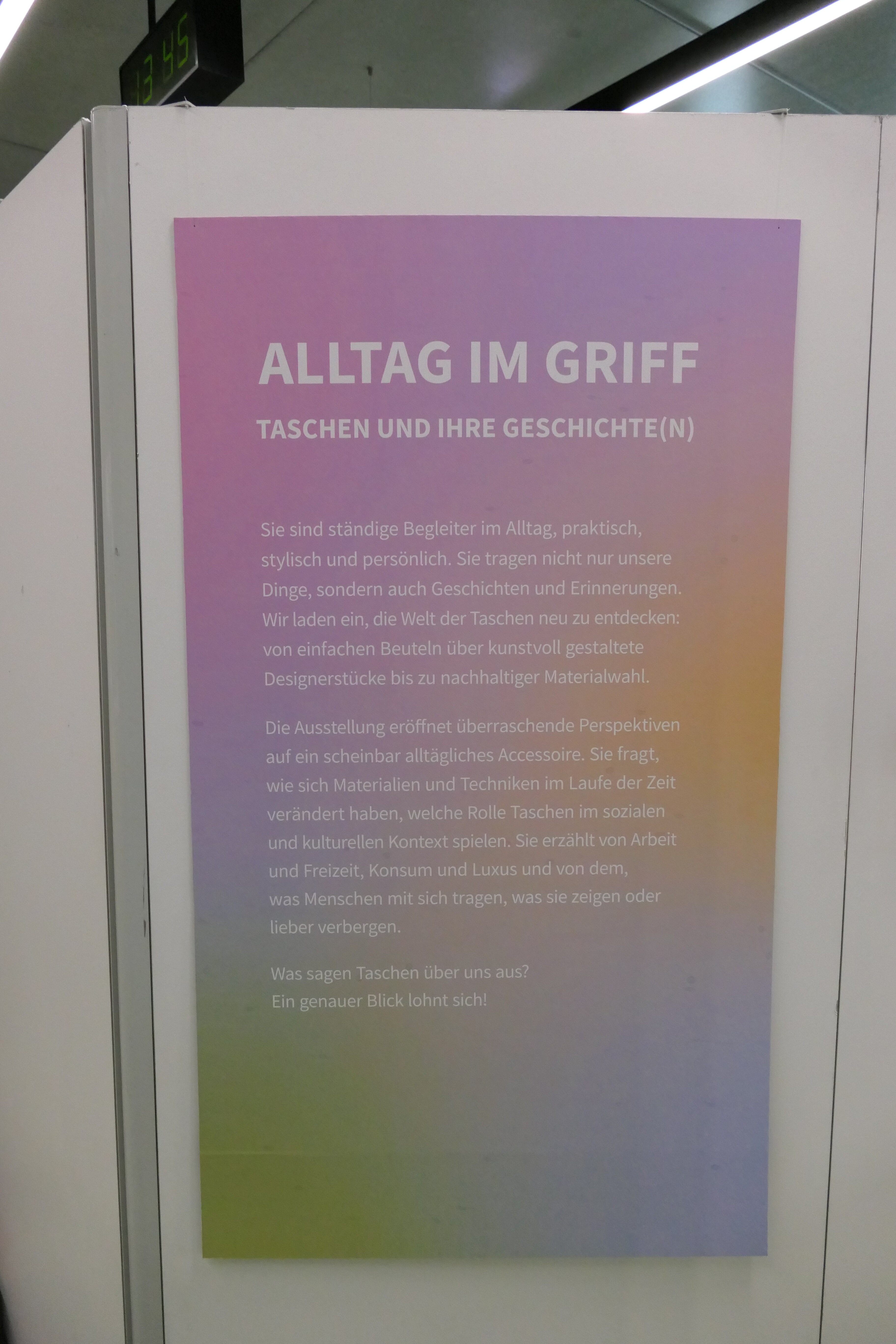 Die gezeigten Objekte eröffnen überraschende Perspektiven auf ein scheinbar alltägliches Accessoire. Sie erzählen von Reisen, Freizeit, Arbeit und Luxus und von dem, was Menschen mit sich tragen, was ihnen wichtig ist, was sie zeigen oder lieber verbergen. Was sagt Deine Tasche über Dich aus? Ein genauer Blick lohnt sich!